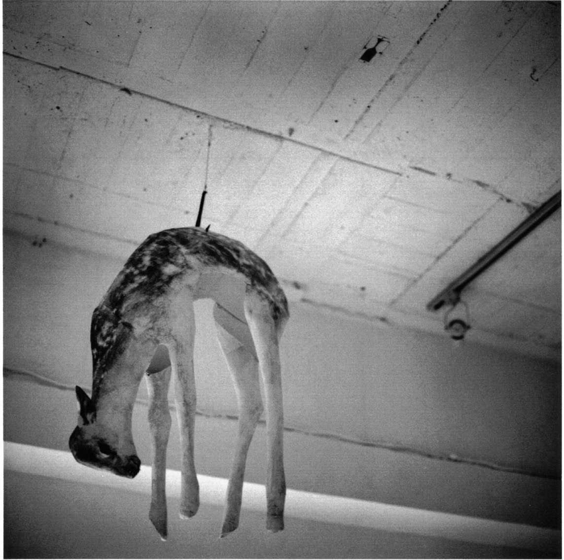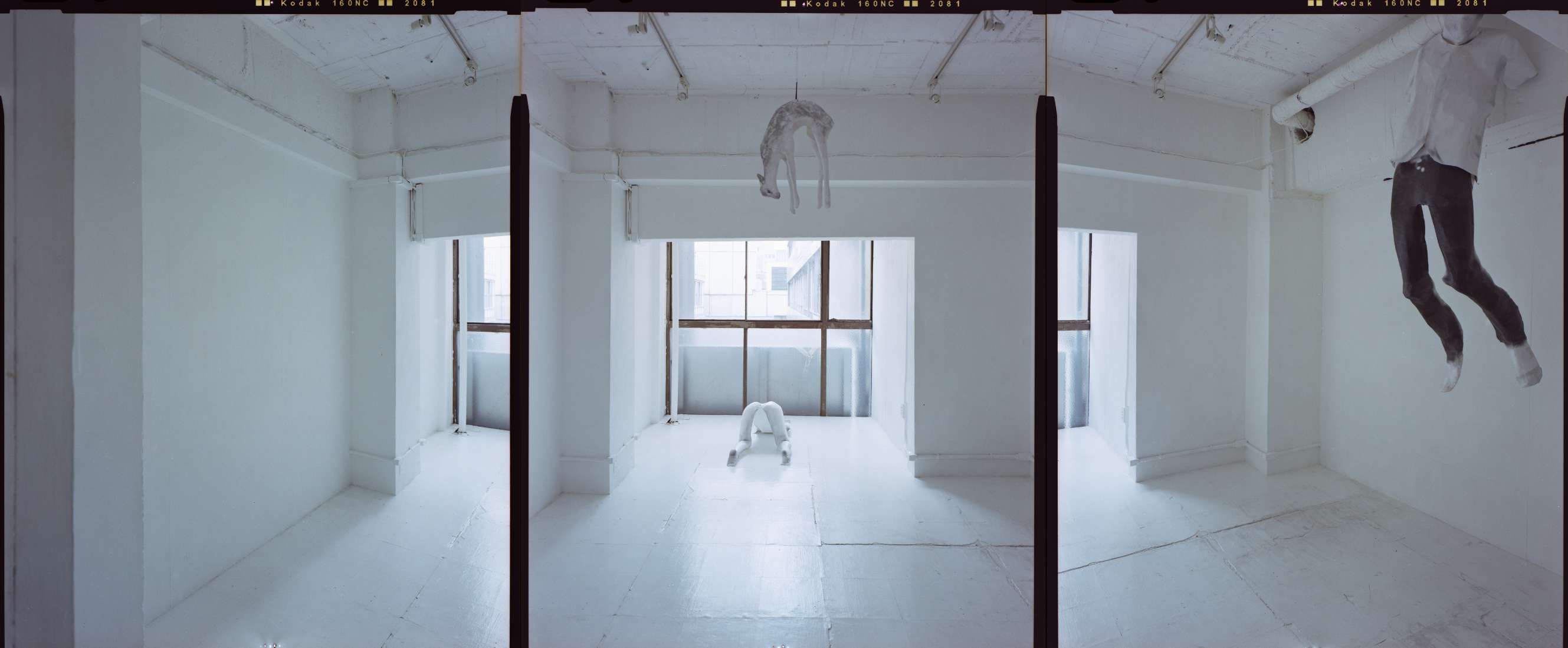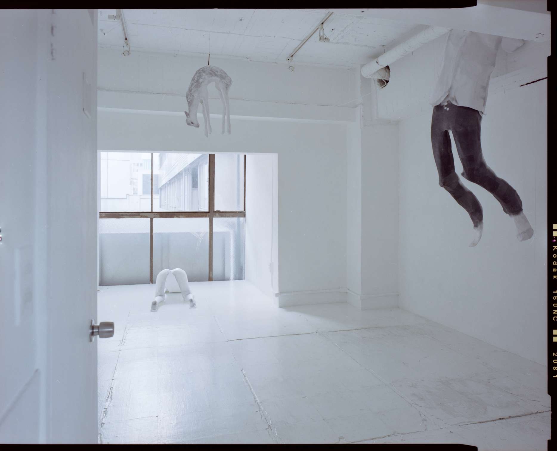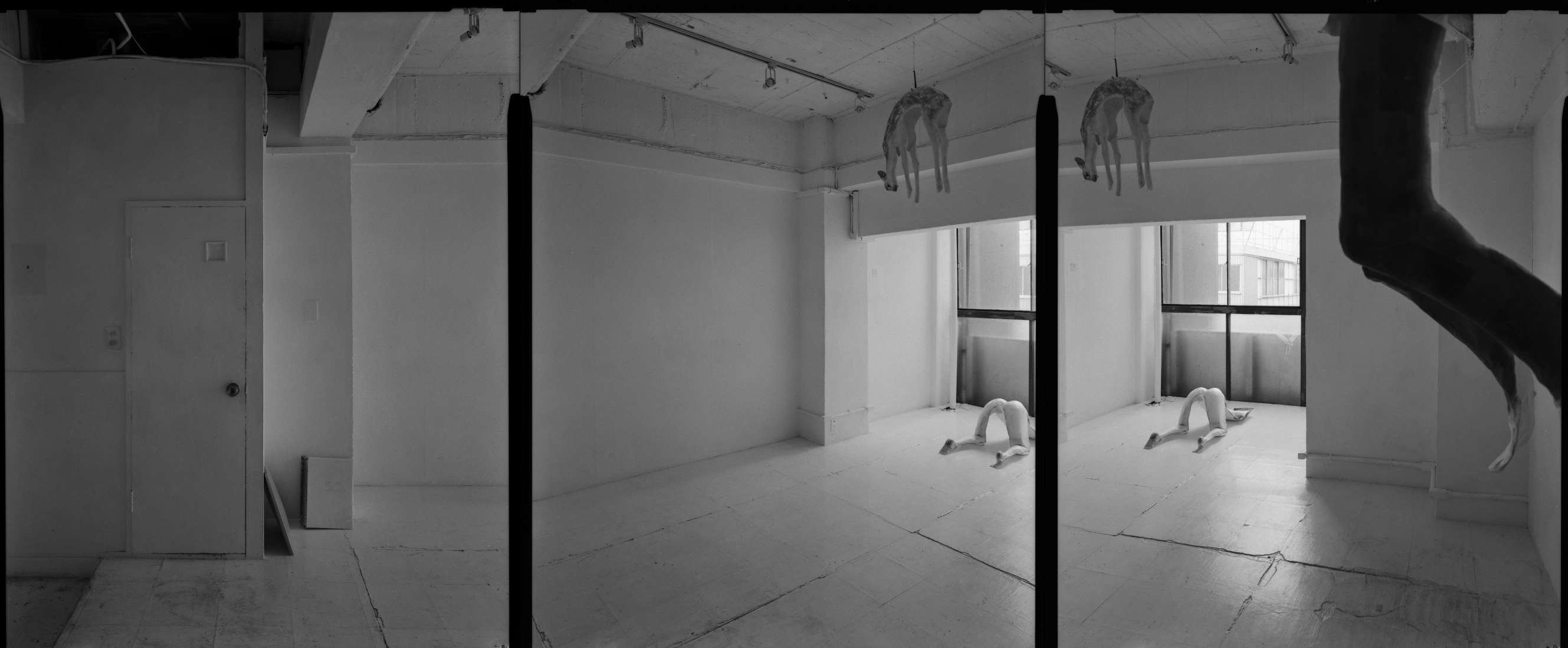 写真を拡大コピーした紙を素材にして、画廊内に立体として再構築されたオブジェたち。