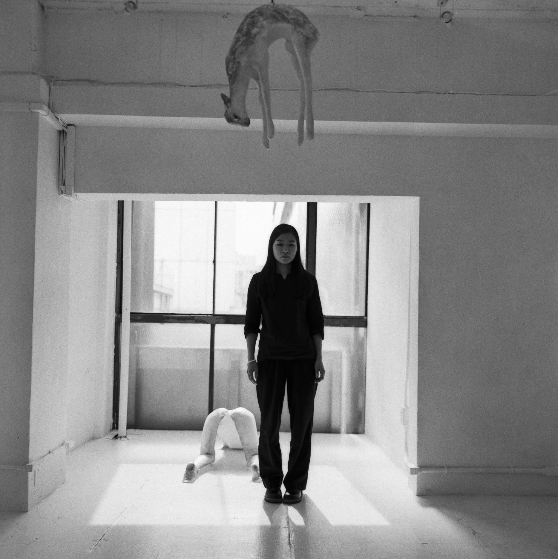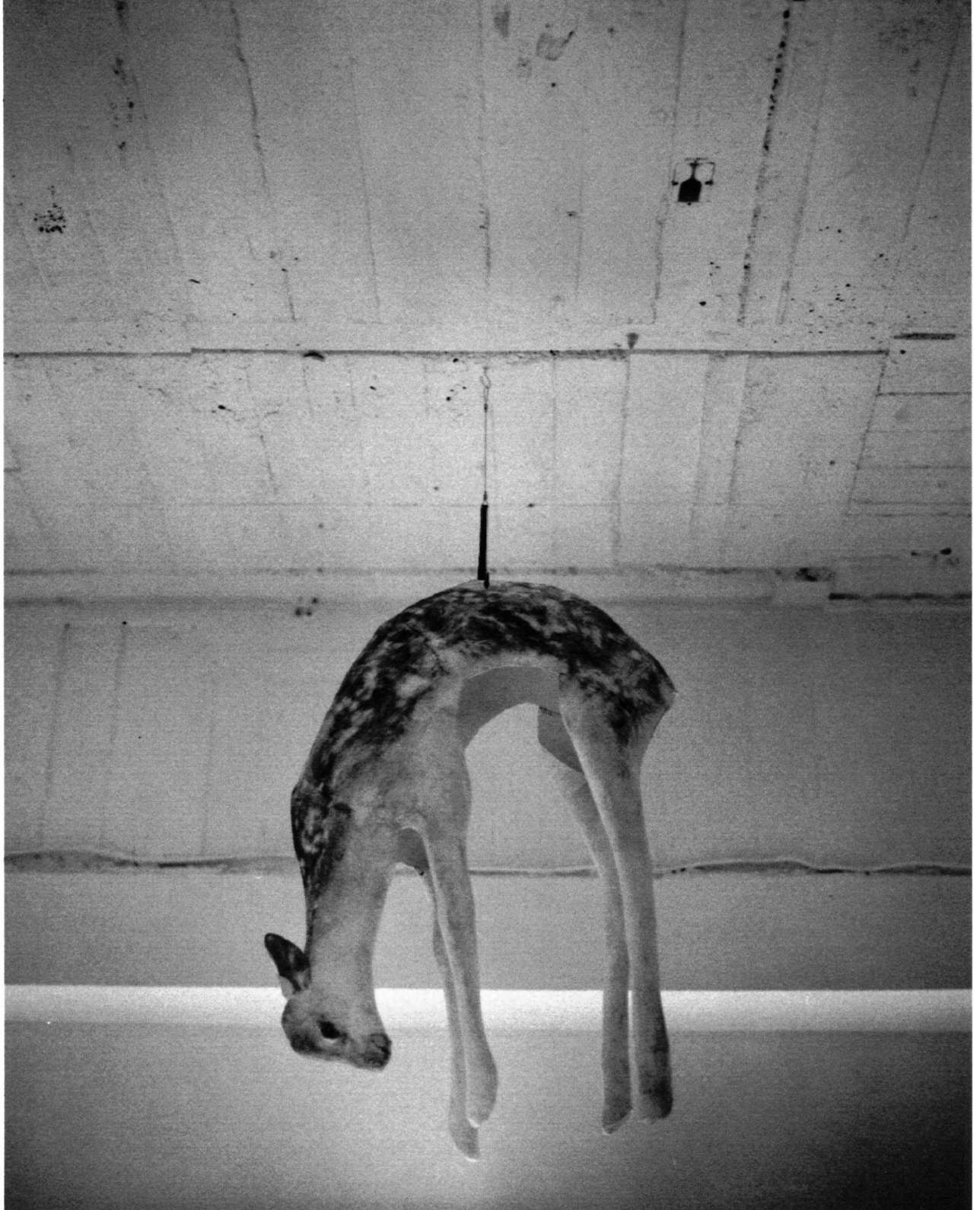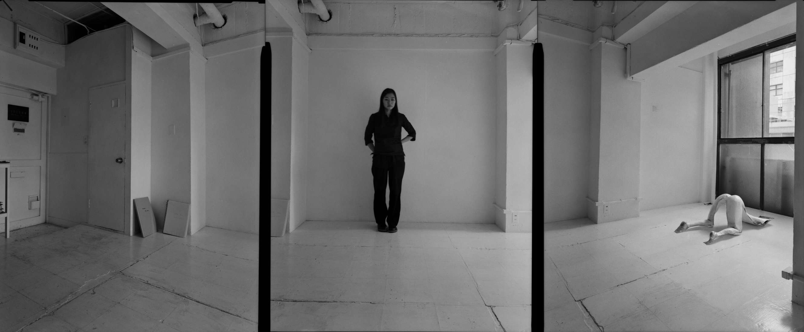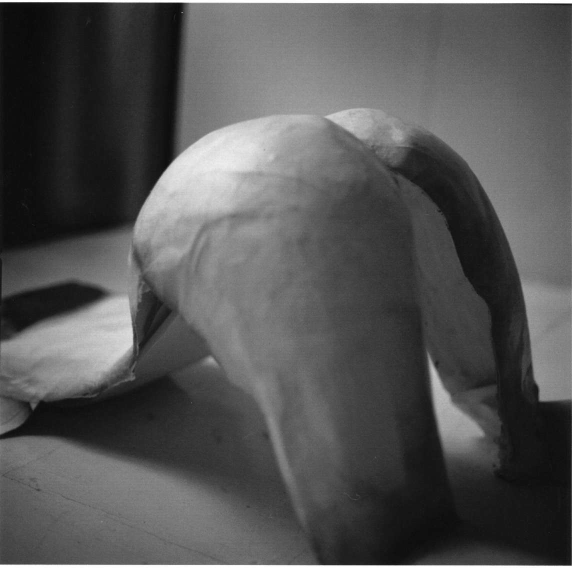 写真を拡大コピーした紙を素材にして、画廊内に立体として再構築されたオブジェたち。